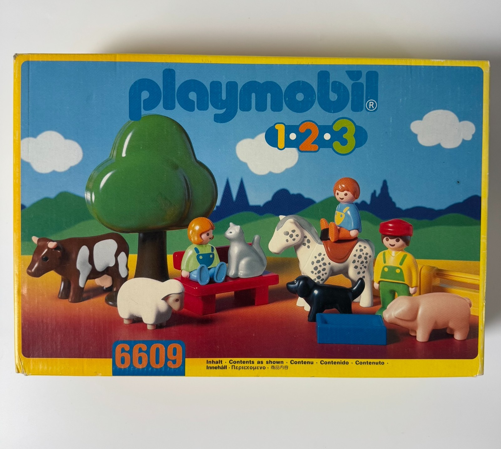 Playmobil 1-2-3 6609 Farm Animals and People Playset from 1999 (Factory-Sealed)