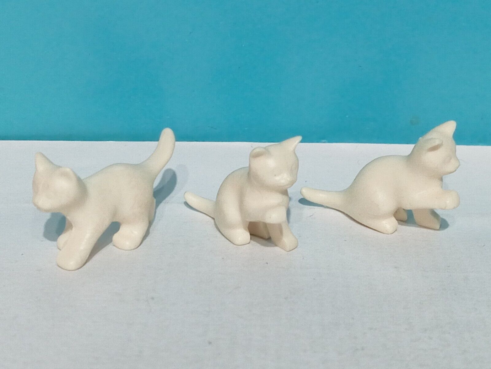 PLAYMOBIL X3 FIGURES CATS BABY WHITE KITTENS CAT FARM HOUSE MANSION FIGURE