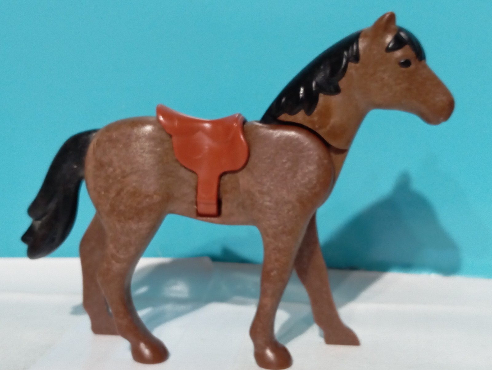 PLAYMOBIL FIGURE BROWN HORSE WITH MOUNT 2nd GENERATION MEDIEVAL WEST