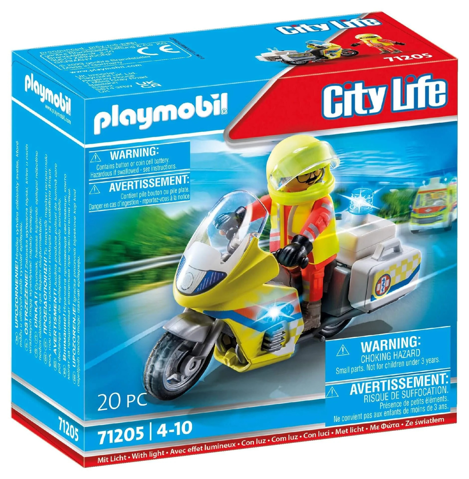 PLAYMOBIL 71205 Rescue Motorcycle with Flashing Light - EMERGENCY SERVICES TOY