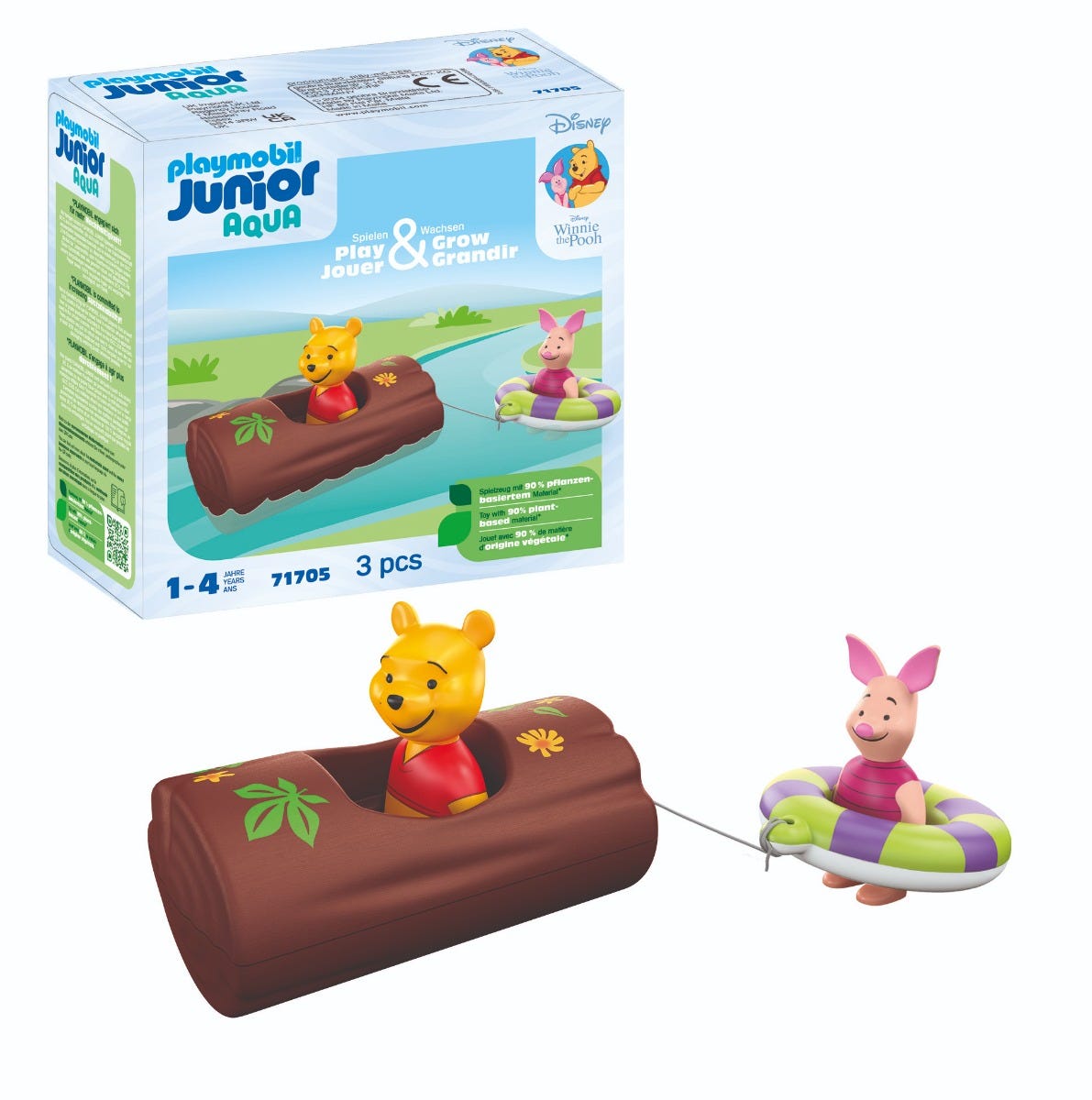 PLAYMOBIL 71705 JUNIOR & Disney: Winnie the Pooh's & Piglet's Water Adventure, including boat and swim ring, sustainable toy made from plant-based plastics, play sets suitable for children ages 1+