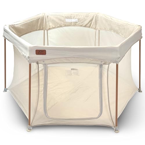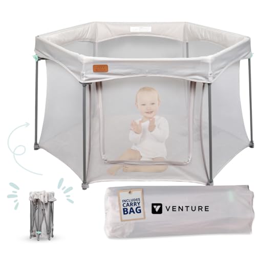 Venture Baby Playpen - All Stars Joy Award-Winning Foldable – Large, Portable Play Pen for Babies & Toddlers, Breathable Mesh & Fitted Mat, Easy to Set Up, Includes Travel Bag - Taupe (6-36 Months)