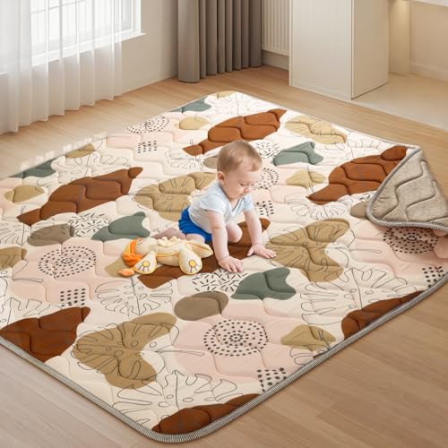 Tuocal Baby Play Mat, 127x127cm Baby Mats for Floor Play Portable Foldable Playpen Thicken Soft Padding Mat Non Slip Baby Crawling Mats Machine Washable Crawling Mat for Babies and Toddlers Infants