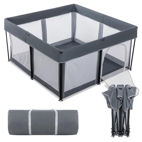 Baby Playpen for Babies and Toddlers, Durable Play Pen with Visible Breathable Mesh, Foam Protection, Easy to Assemble Infant Fence -128 ×128cm (Dark Grey, 128 x 128cm)