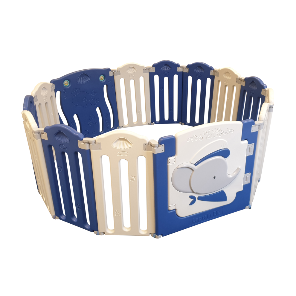(Blue 12 Panel) QTbabies Foldable Playpen for Baby and Toddlers
