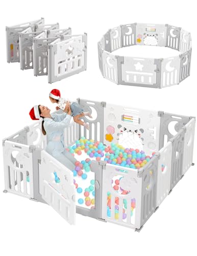 Baby Playpen, Toddler Safety Gate Foldable Play Pen Easy Assembly, Large Size&Shape Adjustable playard, Extra-Large Indoor Playpen for Kids Foldable Baby Play Yard 180x200cm, Light Grey