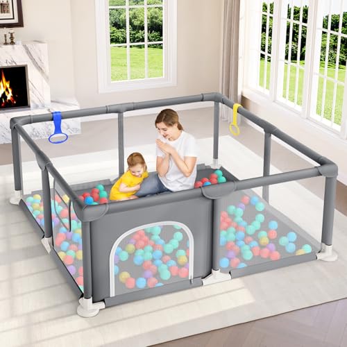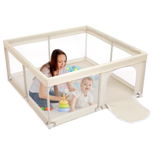 BEJOY Baby Playpen, Play Pen for Baby and Toddlers, Compact and Strong, Foam Protection, Anti-Slip Safety Play Yard with Transparent Breathable Mesh