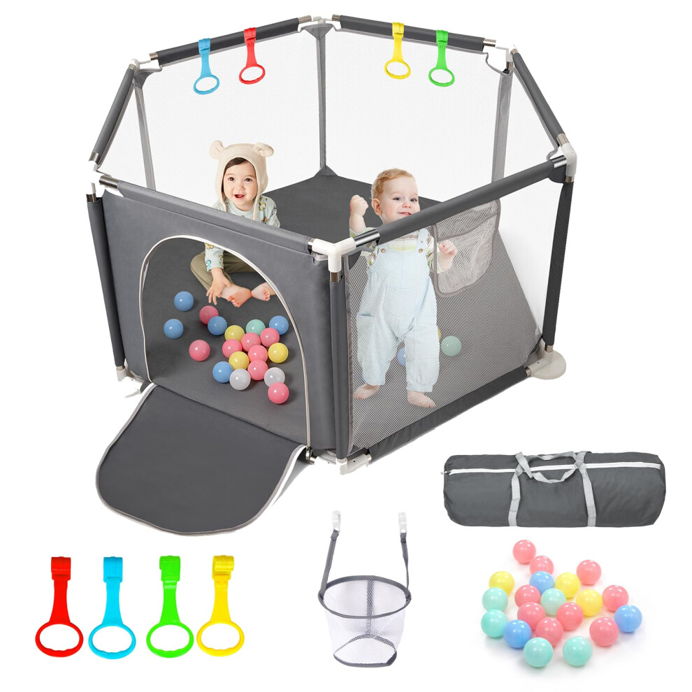 Baby Playpen, 6 Panel Playpen for Baby and Toddlers with Breathable Mesh and 30 Play Balls, Indoor Outdoor Baby Fence Portable Kids Activity Centre f
