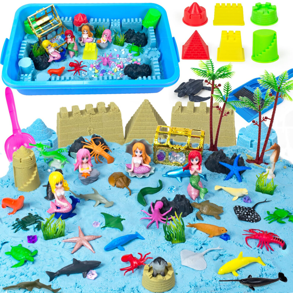 Bloolilies Ocean Sensory Bin Mermaid Play Sand Kits Sensory Playsand for Boys Girls Ages 3 4 5 6 7 8 Gifts 57 Pcs Mermaid Sensory Sand Kit Toys Cas