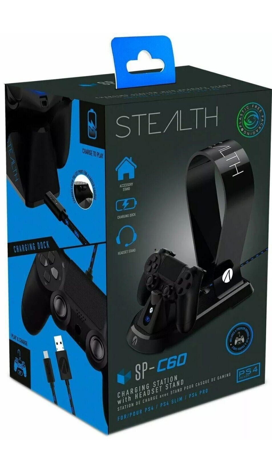 STEALTH SP-C60 PS4 Charging Station Charger with Headset Stand - Black