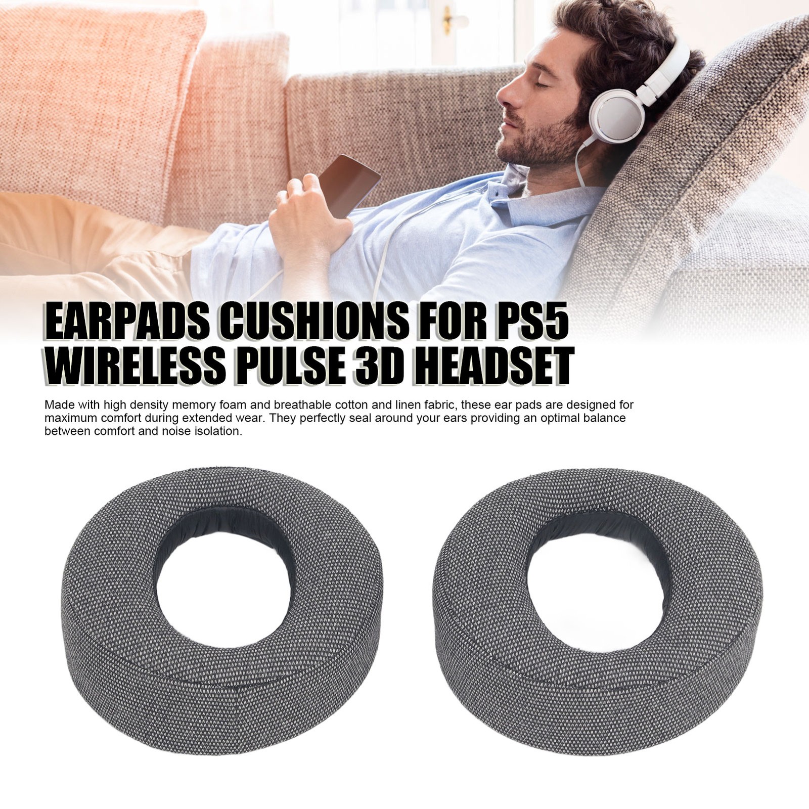 Earpads Cushions For Pulse 3D Wireless Headset Breathable Linen Noise Isola