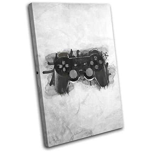Bold Bloc Design - Grunge Retro Playstation PS2 Gaming 75x50cm SINGLE Canvas Art Print Box Framed Picture Wall Hanging - Hand Made In The UK - Framed And Ready To Hang 13-9497(00B)-SG32-PO-C