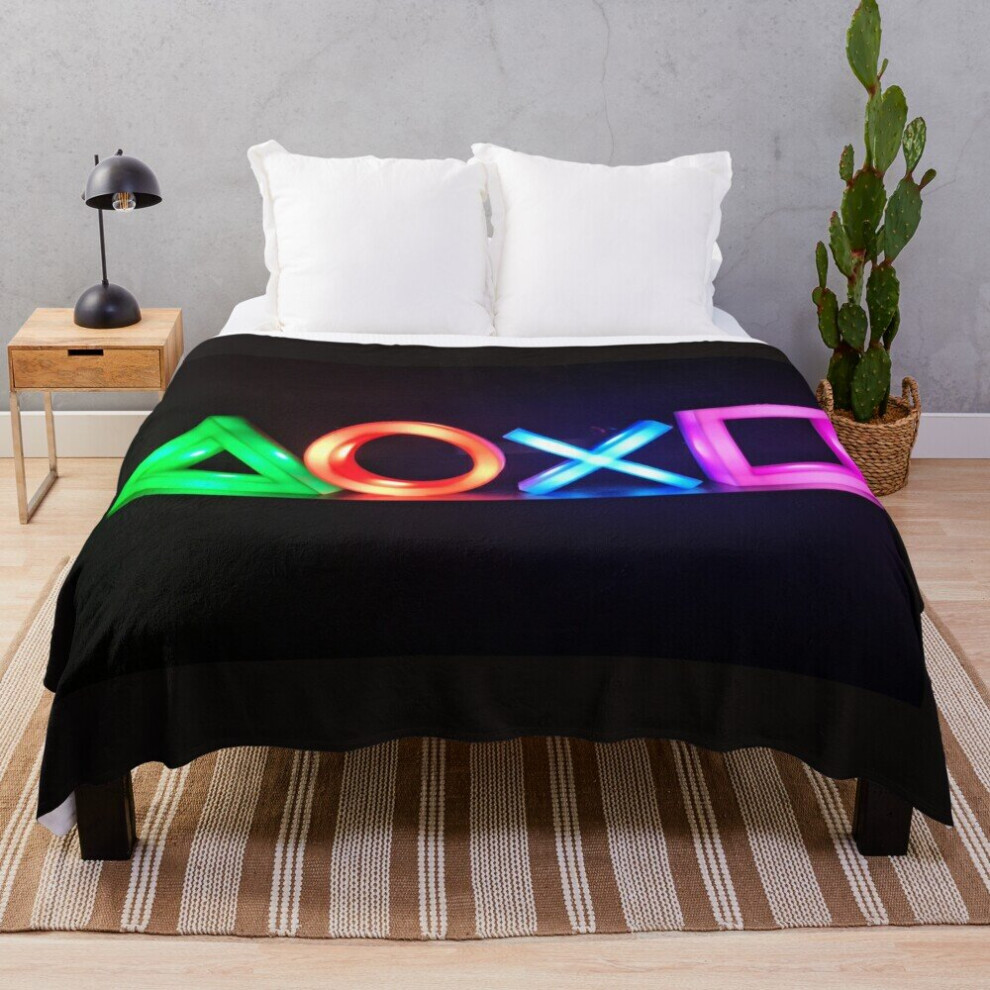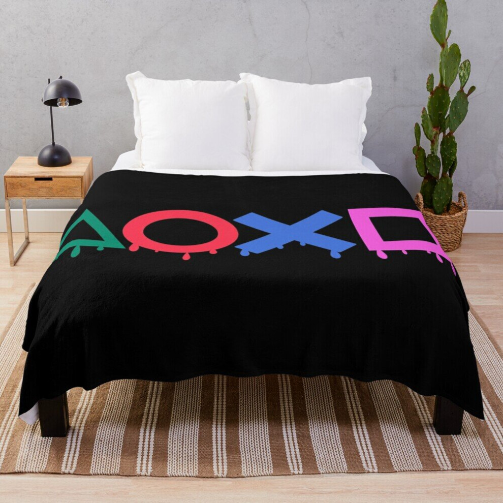 Fleece Throw Blanket Blue Madness Playstation Controller Buttons Icon for Sofa Couch Kids 60 x 50 Inches
