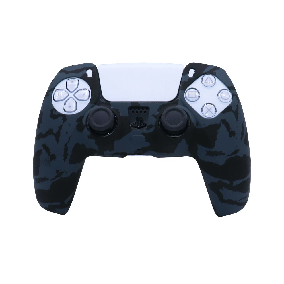 9CDeer 1 Piece of Silicone Protective Cover Skin + 6 Thumb Grips for Playstation 5 / PS5 Controller Camouflage blue