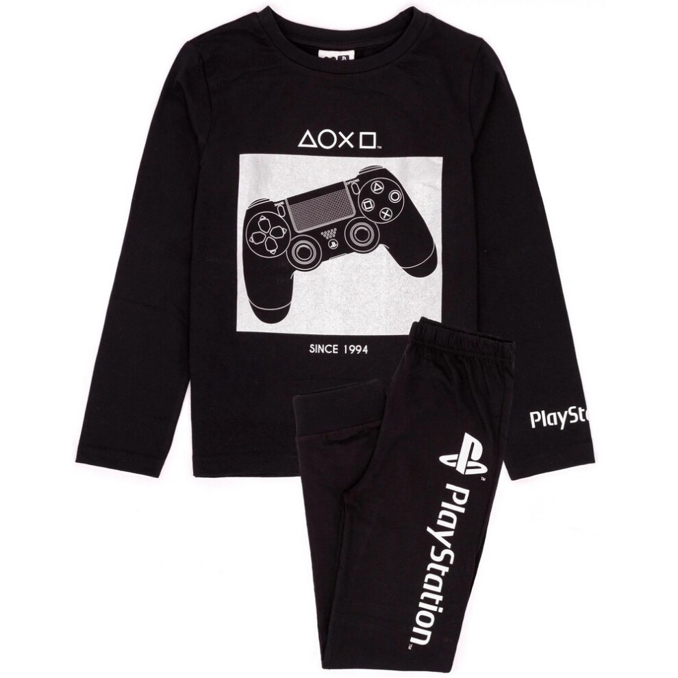 (6-7 Years, Black/White) Playstation Boys Game Controller Long Pyjama Set
