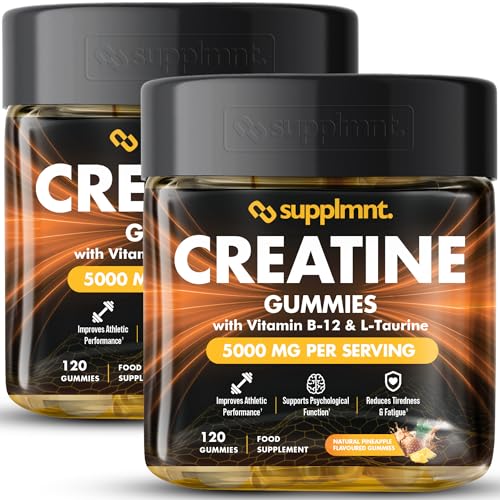 Supplmnt. 2 x Creatine 120 Gummies Max 5000mg for Men & Women Creatine Monohydrate Plus B12 and L-Taurine Chewable Gummies, 2 x 1 Month Supply (Dual Pack, Pineapple)
