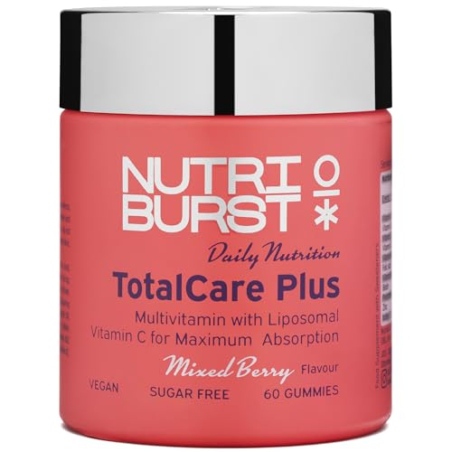 Nutriburst TotalCarePlus - Multivitamin with Vitamin C, D, B12 + Zinc - Immune System Support - Berry Flavour - 60 Gummies 1 Month Supply - Suitable for Vegans