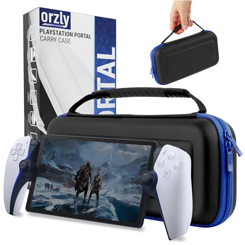 Orzly Carry Case Designed for PlayStation Portal Remote Player for PS5 Console Holds Accessories, Travel and Storage Protection for Headset Charger and More Black/Blue - Gift Box Edition