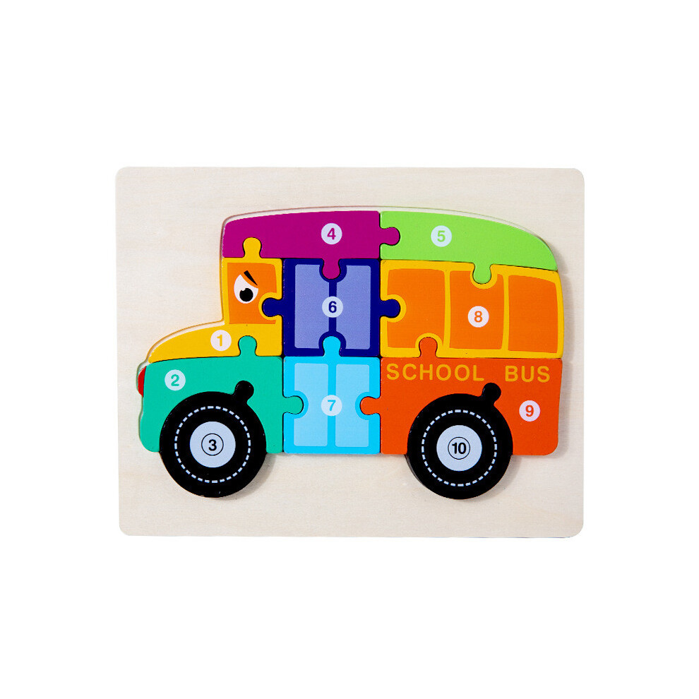 (Bus) Dinosaur Children Wooden Number Puzzle Set For Brain Development And Playtime