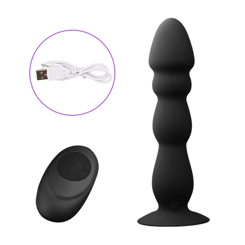 (Black) Silicone Anal Beads Butt Plug Adult Pleasure Suction Cup Dildo Sex Toy