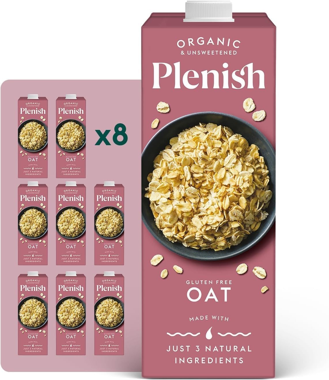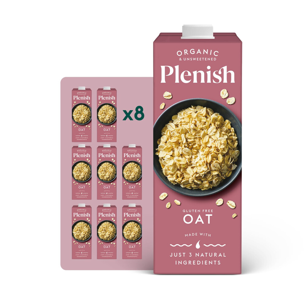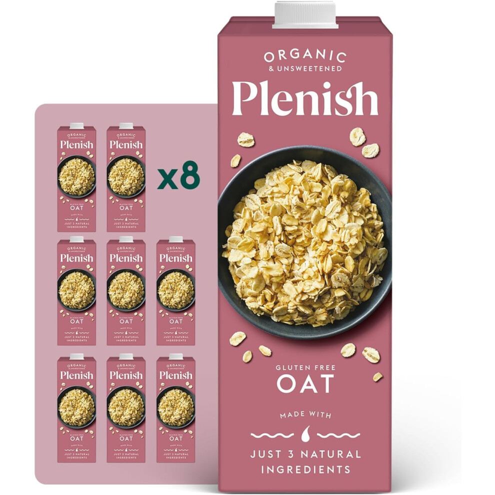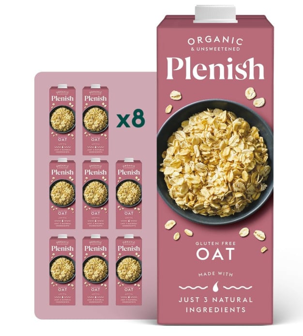 Plenish Organic Unsweetened Oat Milk (8 x 1 Litre)