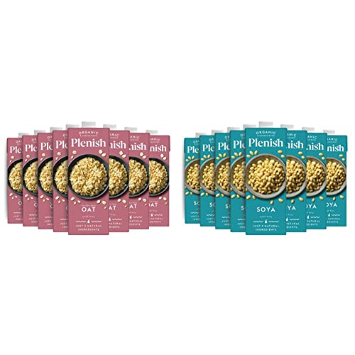 Plenish Organic Unsweetened Oat Milk (8 x 1 Litre) & Soya Milk Drink| 8 x 1 Litre | Vegan, Organic, Unsweetened