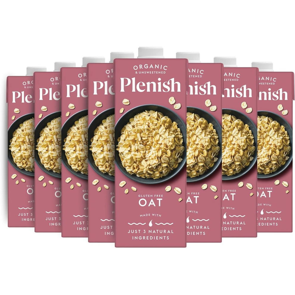 Plenish Organic Unsweetened Oat Milk 1L Pack of 8