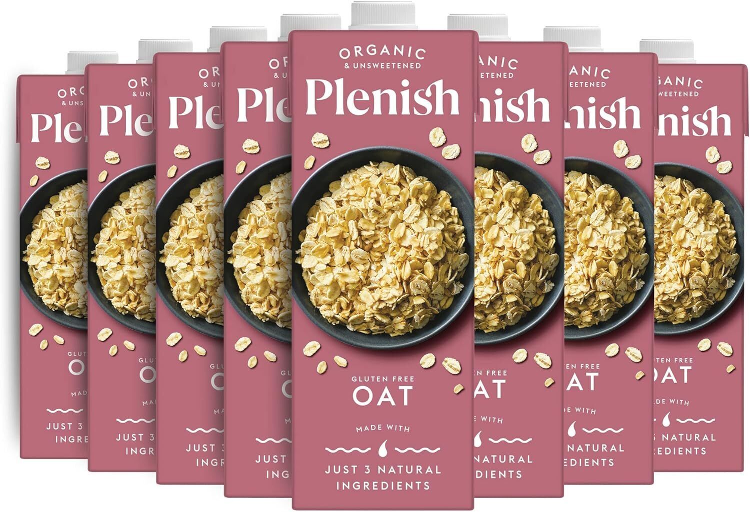 Plenish Organic Unsweetened Oat Milk 1L - 8 Pack for Creamy Goodness