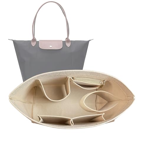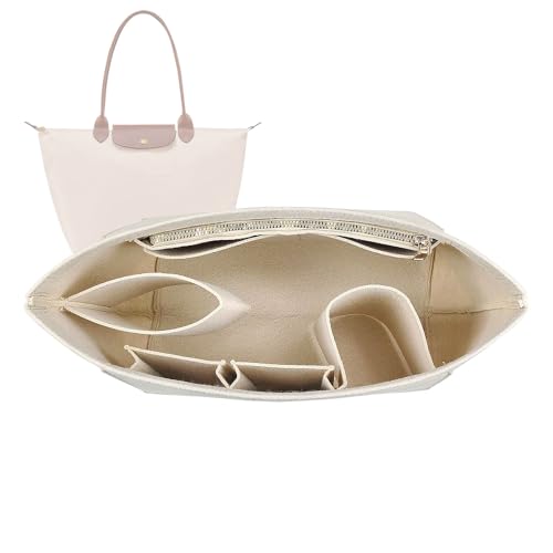 Lckaey tote bag organizer insert for Longchamp le pliage large tote insert felt purse zipper bag organizer 1028beige-M