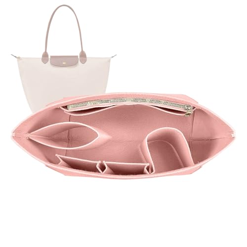 Lckaey tote bag organizer insert for Longchamp le pliage large tote insert felt purse zipper bag organizer 1028pink-L