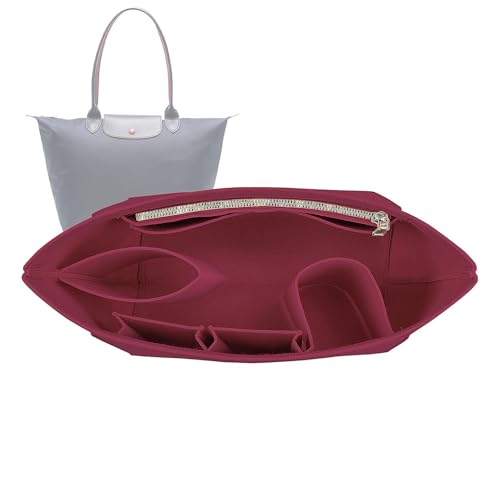 Lckaey Felt Purse Organizer Insert for Longchamp Le Pliage Large Tote, Red, M/12.8*4.9*7.8in AG