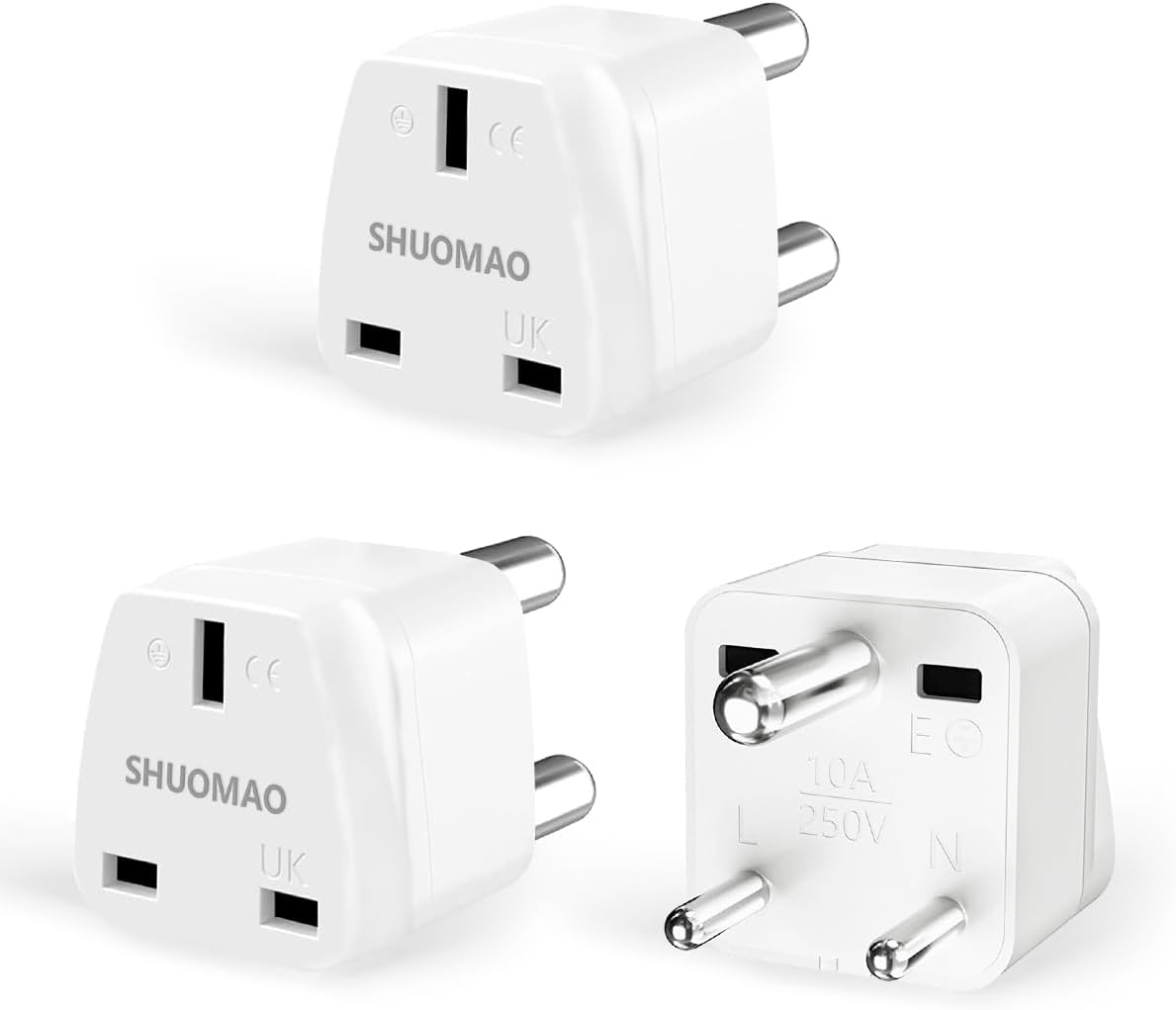 3-Pack UK to India Plug Adapter,Shuomao UK to 3 Pin Indian/Pakistan/Sri Lanka Pl