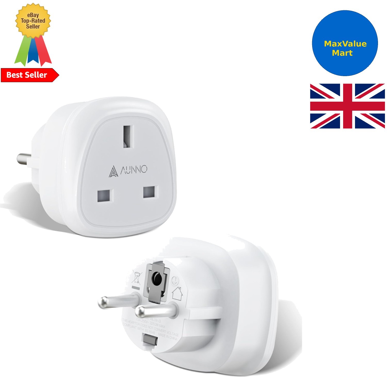 Pack of 2 UK to Plug Adapters | Safe Travel Converter - Type G to Type C/E/F