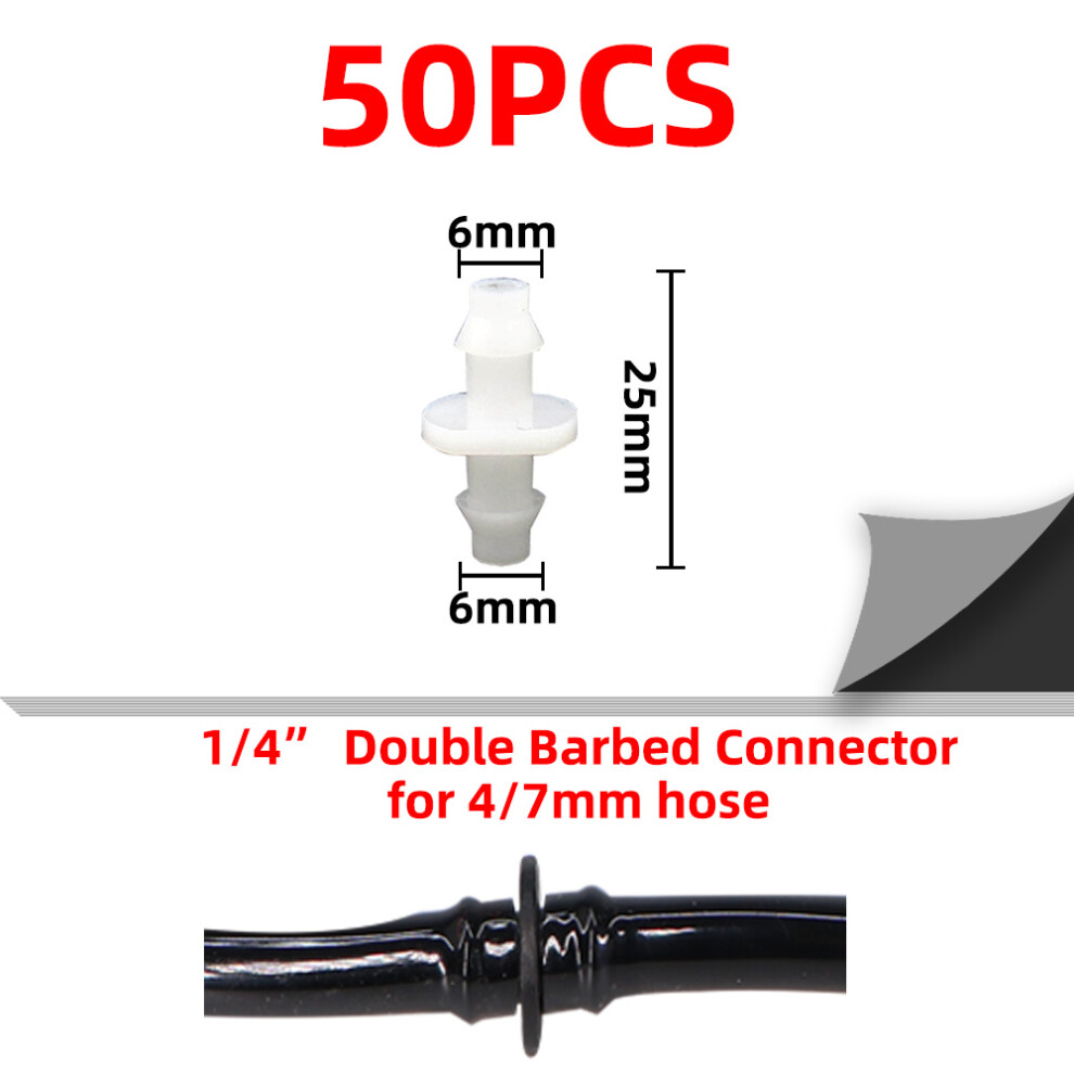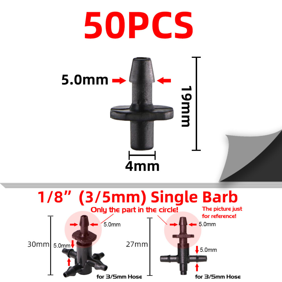 (N-50PCS) 50PCS 1/4'' & 1/8'' Tubing Hose Accessories Joint Barbed Tees Cross Eng Plug Adaptors for Garden Water Connector Drip Irrigation