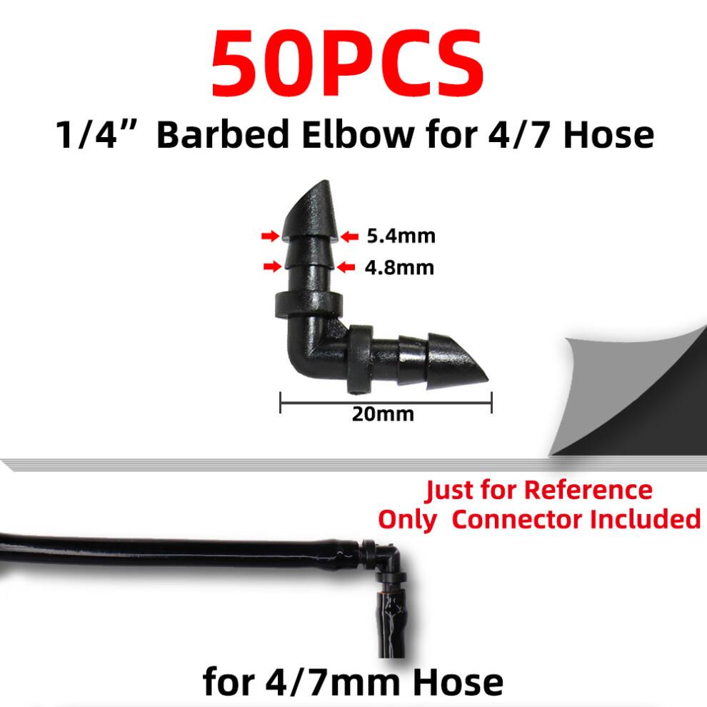 (Q-50PCS) 50PCS 1/4'' & 1/8'' Tubing Hose Accessories Joint Barbed Tees Cross Eng Plug Adaptors for Garden Water Connector Drip Irrigation