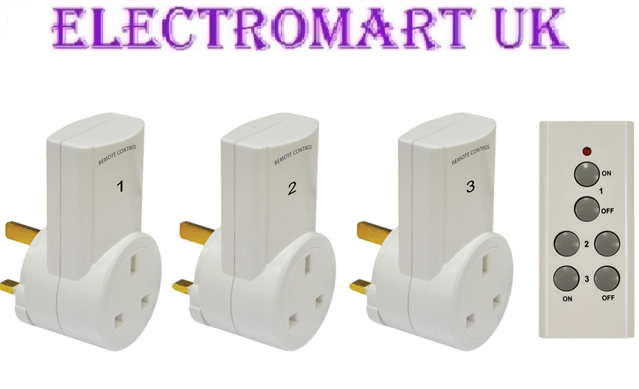 WIRELESS REMOTE CONTROL MAINS 13A PLUG IN SOCKETS SOCKET PLUGS ADAPTORS X 3