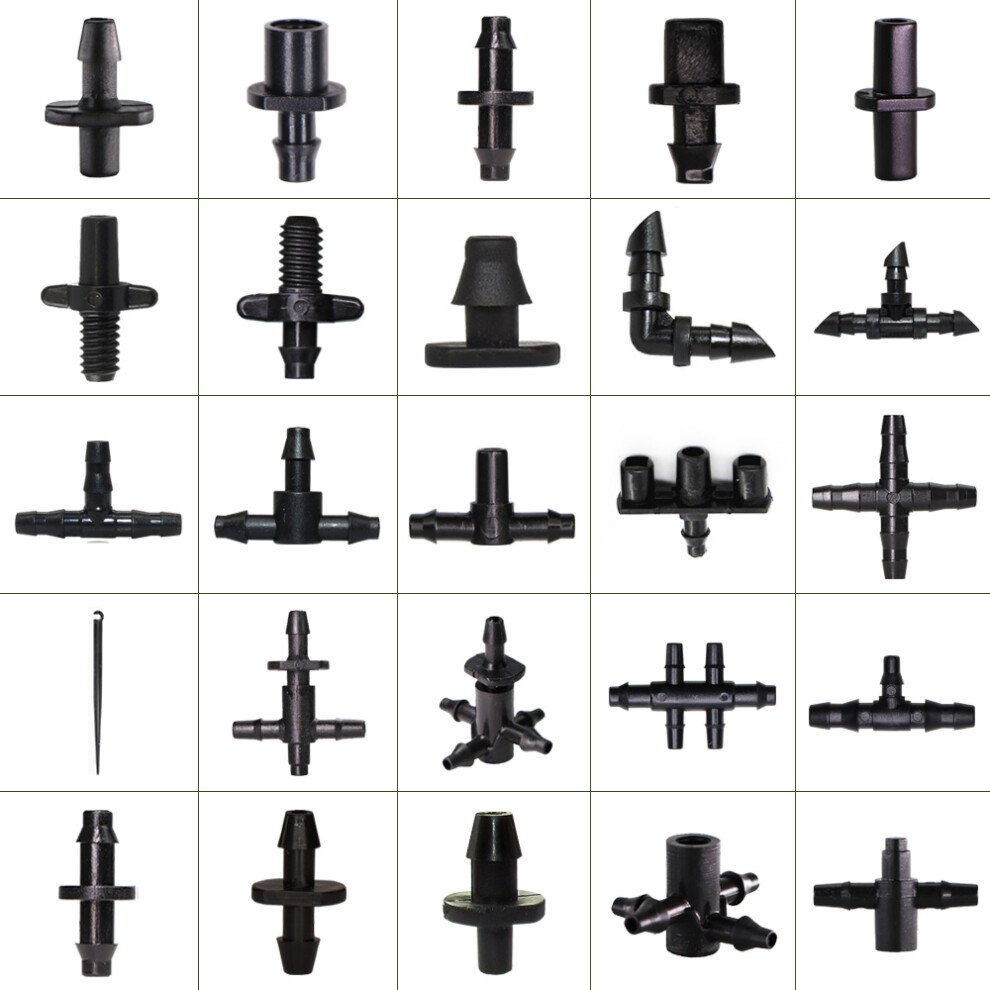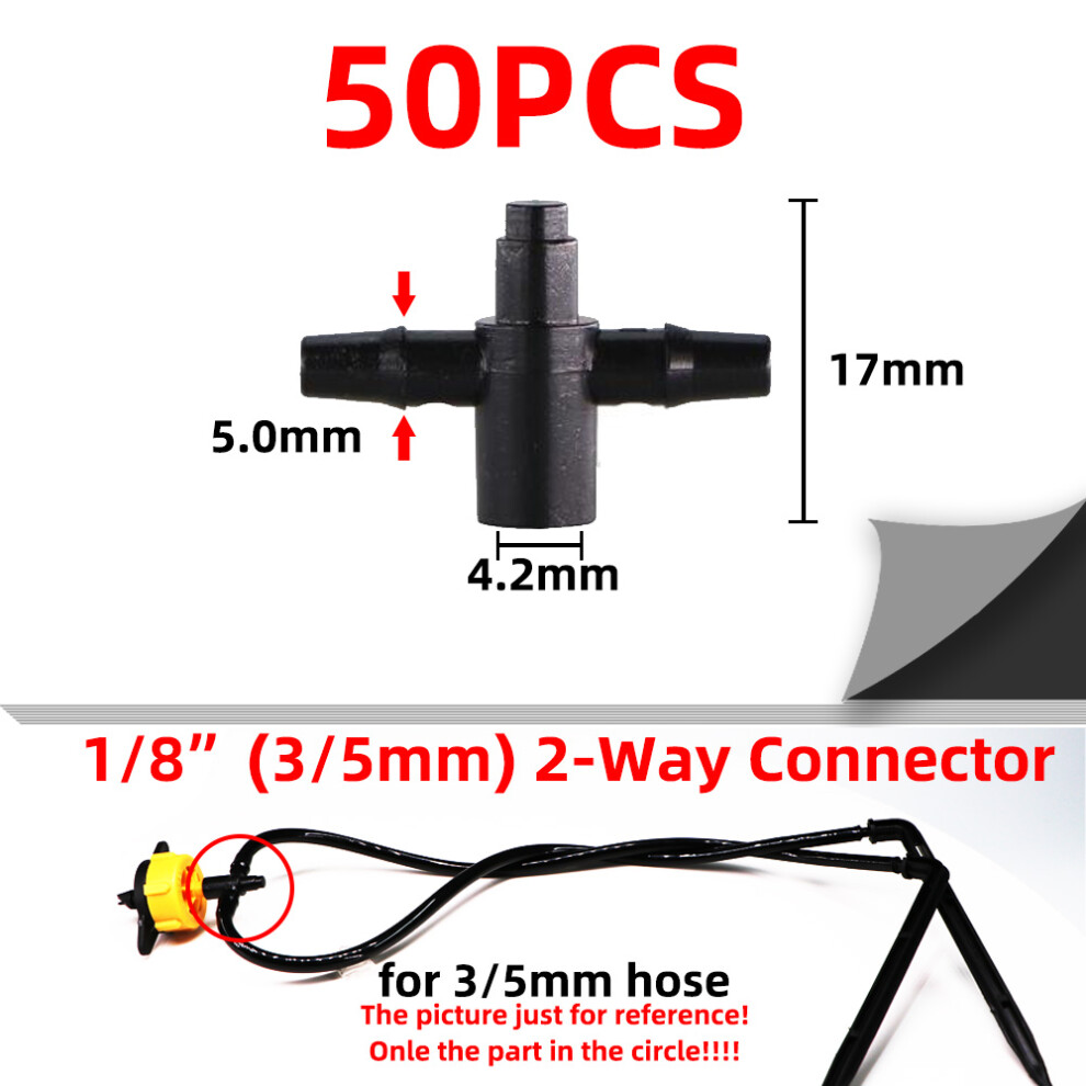(S-50PCS) 50PCS 1/4'' & 1/8'' Tubing Hose Accessories Joint Barbed Tees Cross Eng Plug Adaptors for Garden Water Connector Drip Irrigation