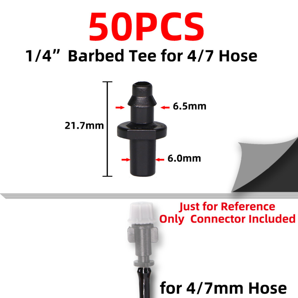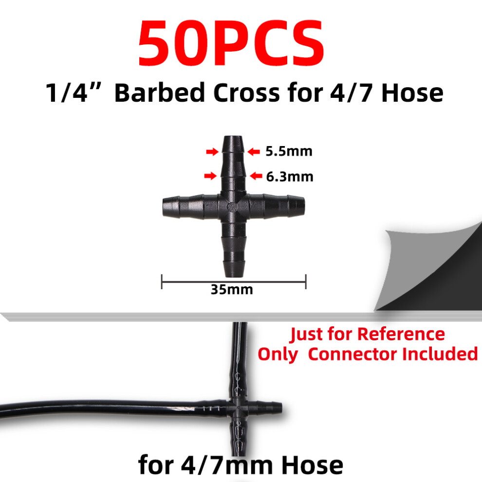 (X-50PCS) 50PCS 1/4'' & 1/8'' Tubing Hose Accessories Joint Barbed Tees Cross Eng Plug Adaptors for Garden Water Connector Drip Irrigation