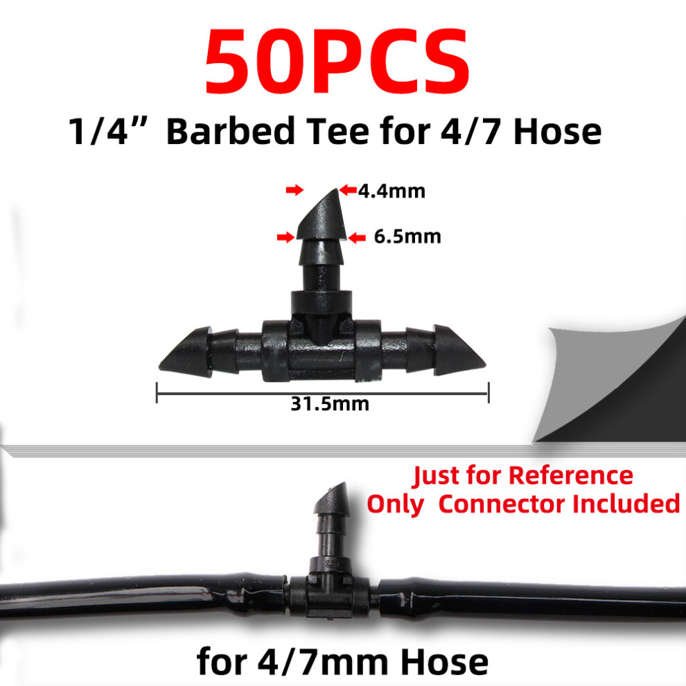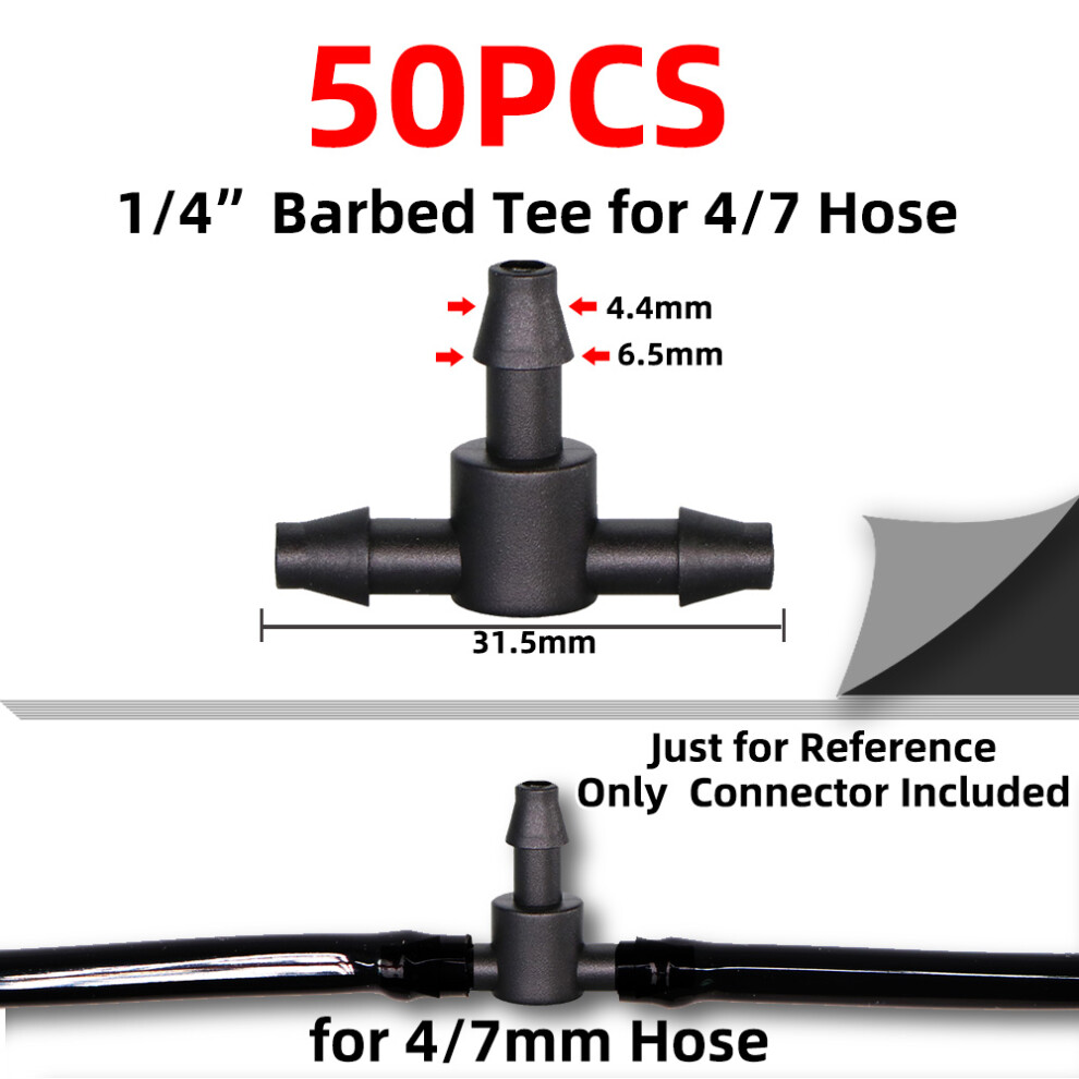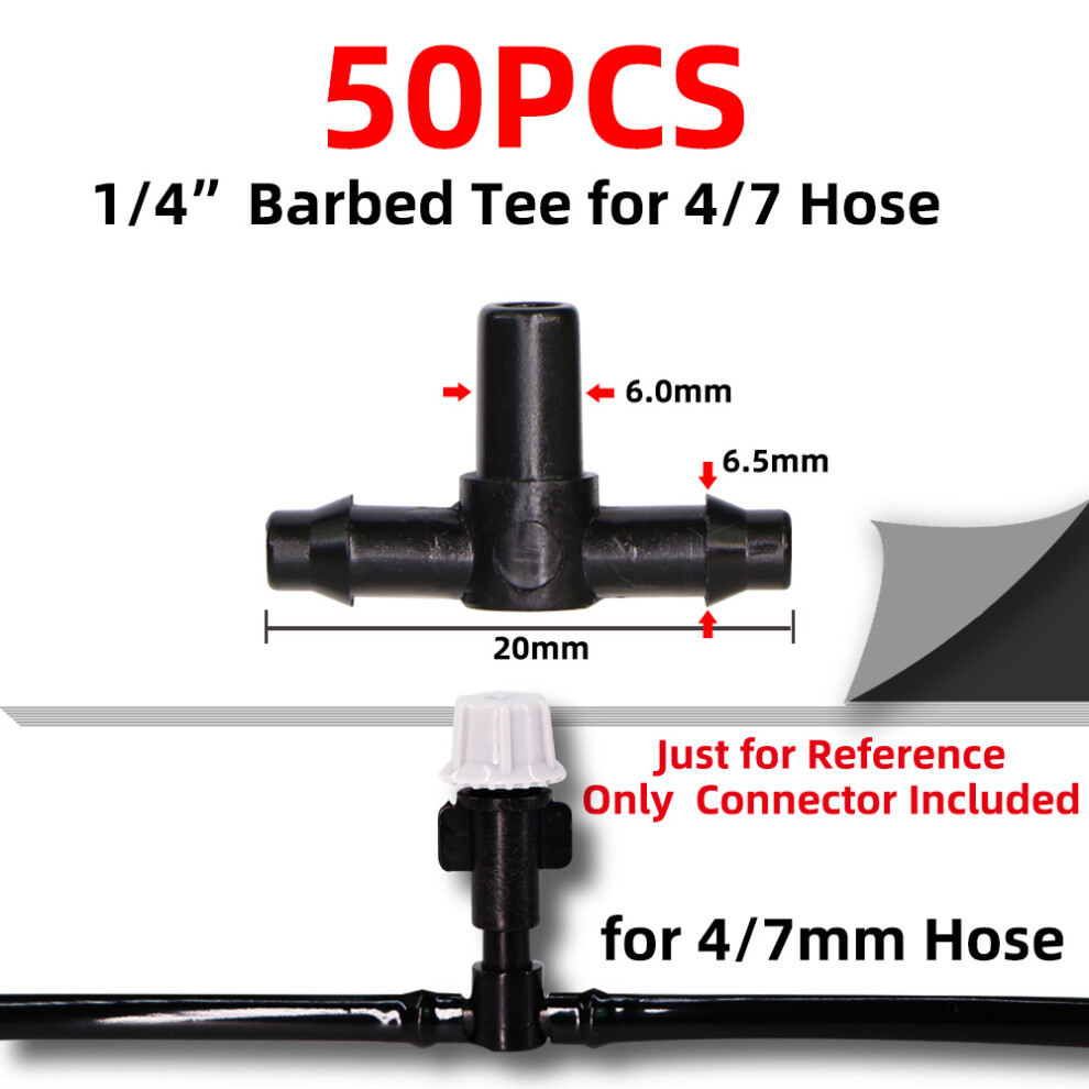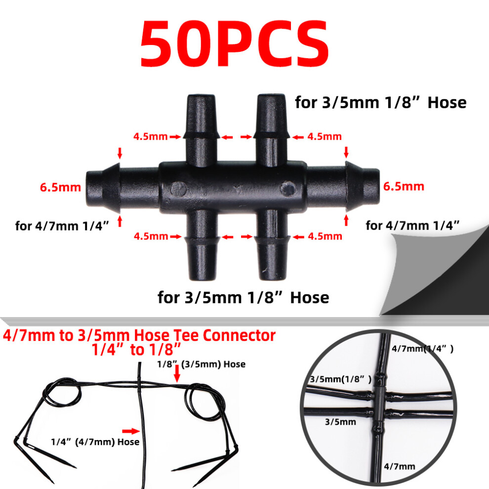 (T-50PCS) 50PCS 1/4'' & 1/8'' Tubing Hose Accessories Joint Barbed Tees Cross Eng Plug Adaptors for Garden Water Connector Drip Irrigation