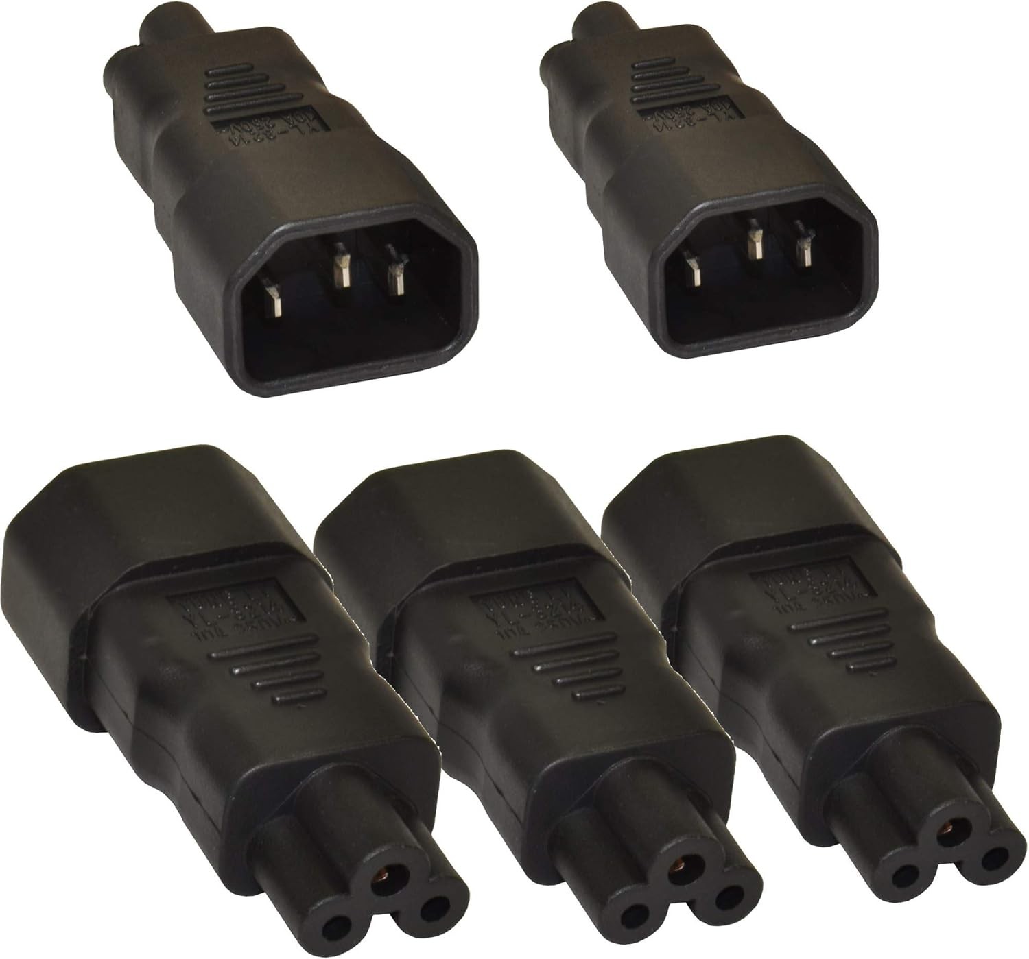 1STec 5 Pack of IEC C14 to C5 Adaptors 250V 10A Electrical Plug Cloverleaf Mick