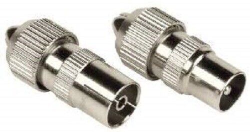 Pair TV Aerial Coax Adaptors 1x Male Coax Plug & 1x Female Socket - Solder Free