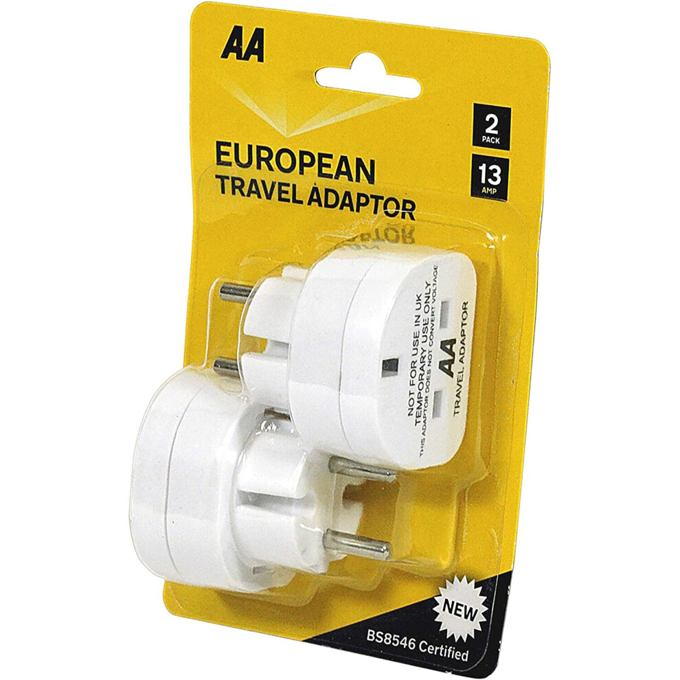 AA AA6585 Pair of UK-EU 13 Amp Plug Adaptors - Essential Travel Accessory for Europe