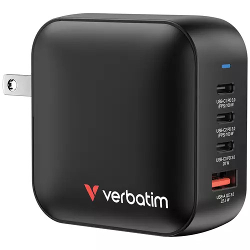 Verbatim Mini GaN Charger 100W 4 Port US plug with EU and UK adaptors