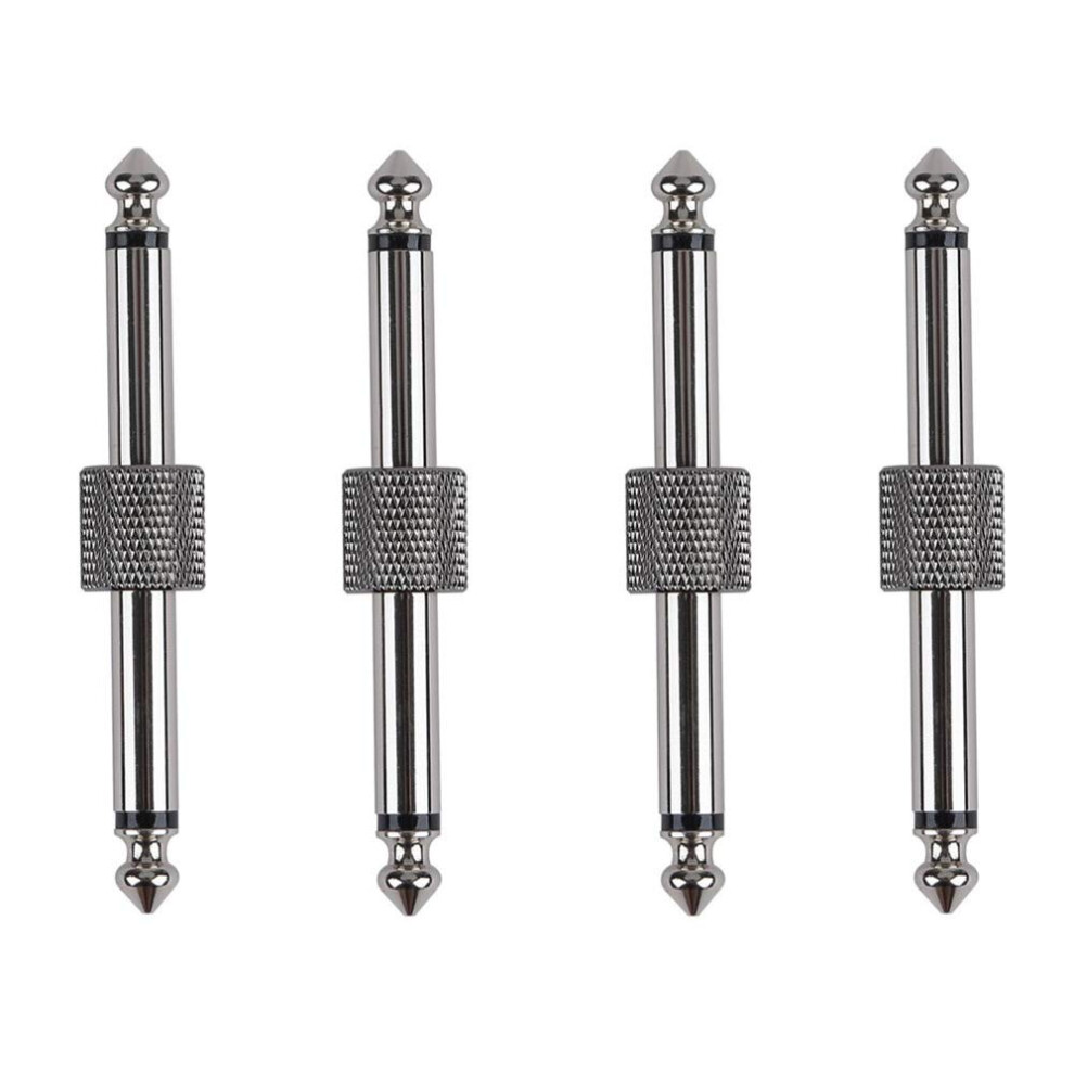 Rayzm Guitar Pedal Connectors, 6.35mm (1/4") Male to Male Straight Plug Adaptors for Guitar Pedalboard - Pack of 4