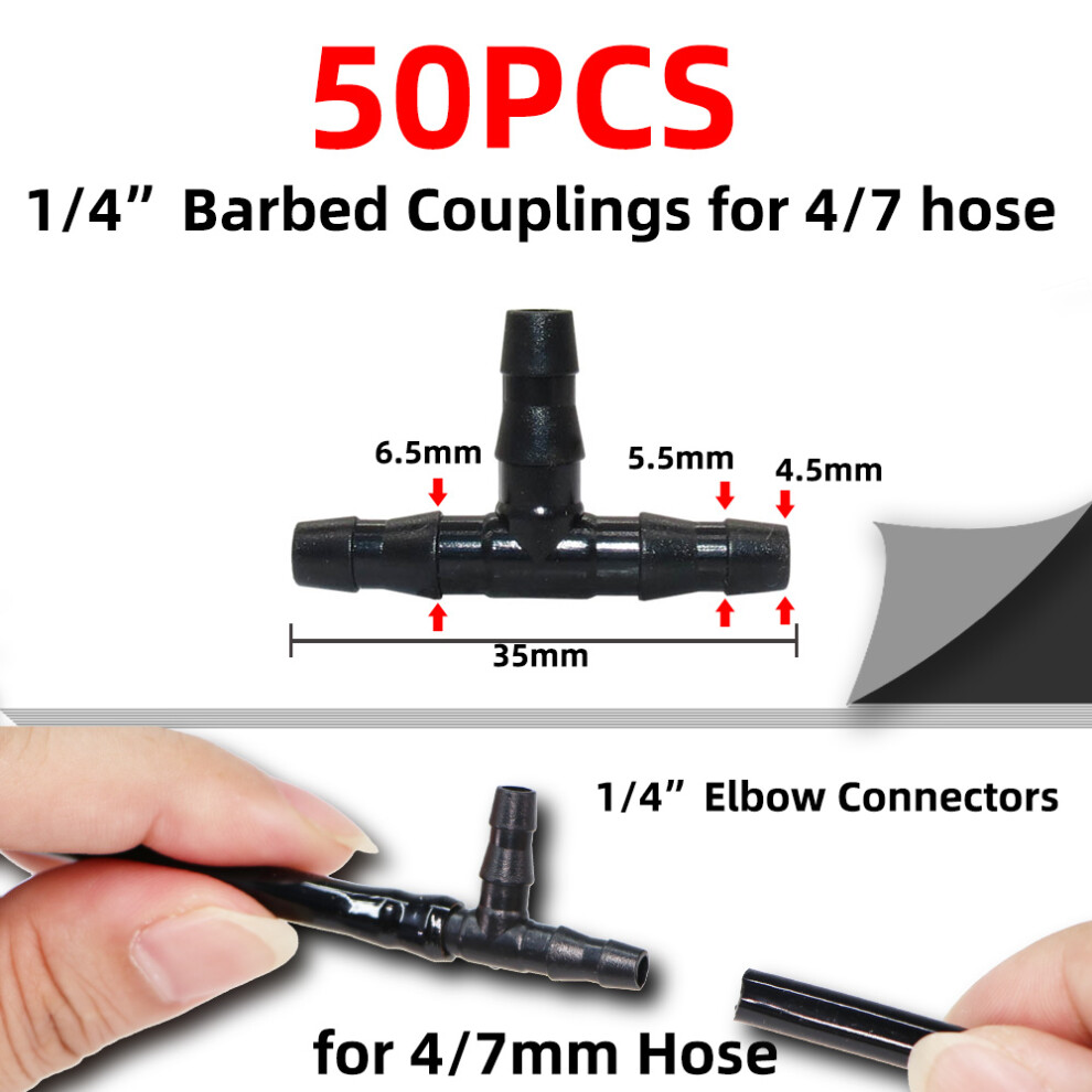 (J-50PCS) 50PCS 1/4'' & 1/8'' Tubing Hose Accessories Joint Barbed Tees Cross Eng Plug Adaptors for Garden Water Connector Drip Irrigation