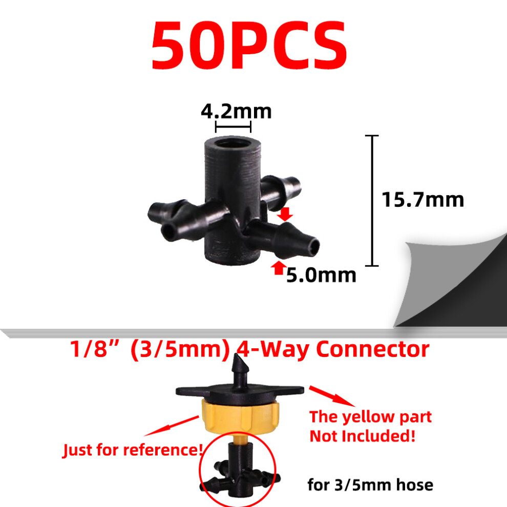 (A-50PCS) 50PCS 1/4'' & 1/8'' Tubing Hose Accessories Joint Barbed Tees Cross Eng Plug Adaptors for Garden Water Connector Drip Irrigation