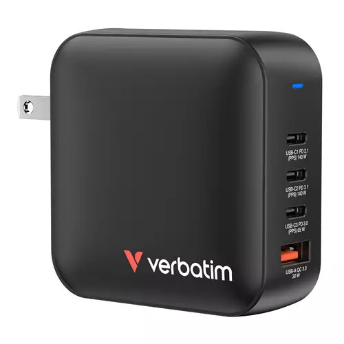 Verbatim Mini GaN Charger 165W 4 Port US plug with EU and UK adaptors