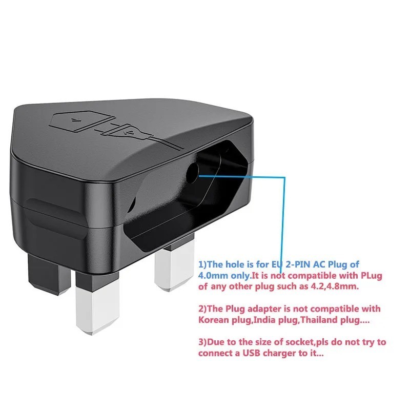 EU 2 Pin to UK 3 Pin Travel Plug Adapter Converter Socket Charger Power Adapter