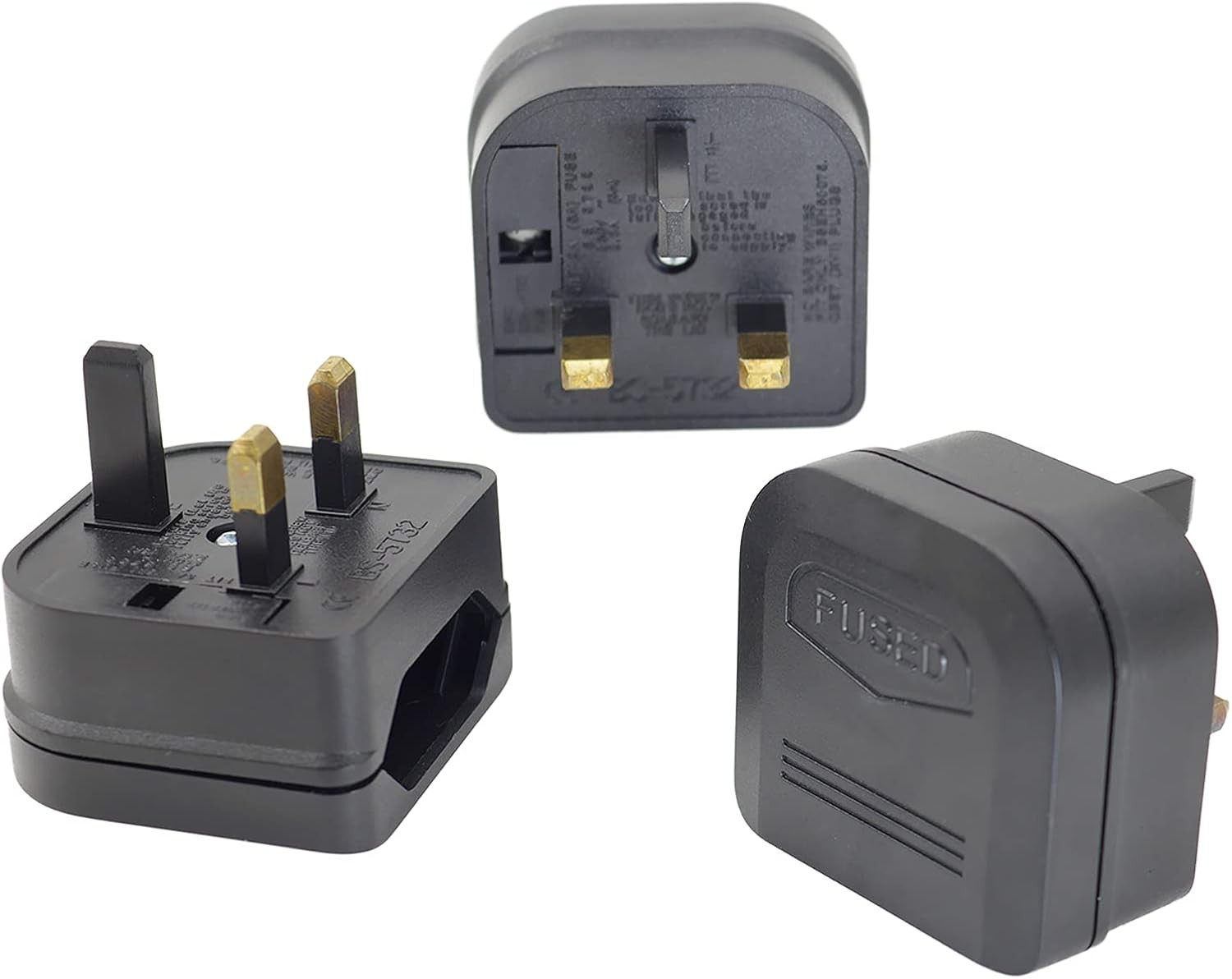 Casoter EU to UK Plug Adapter 3 Pack 5A Fuse Type C E F to Type G Converter Blac