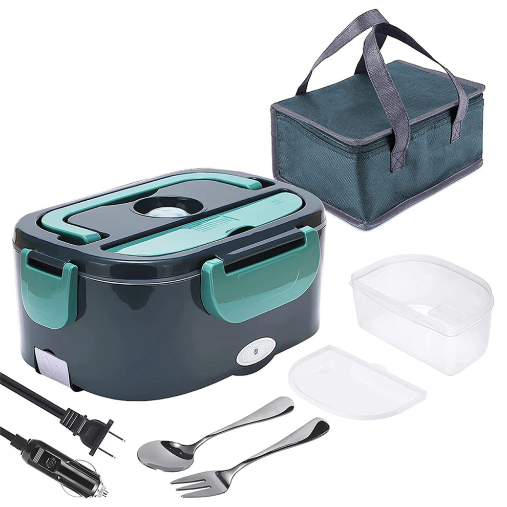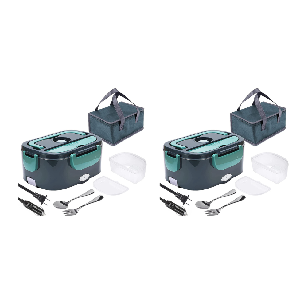 2X Electric Lunch Box,2 in 1 Portable Food Warmer Heater Box for Car,Work,Home&Office -Capacity 1.5L US Plug Green